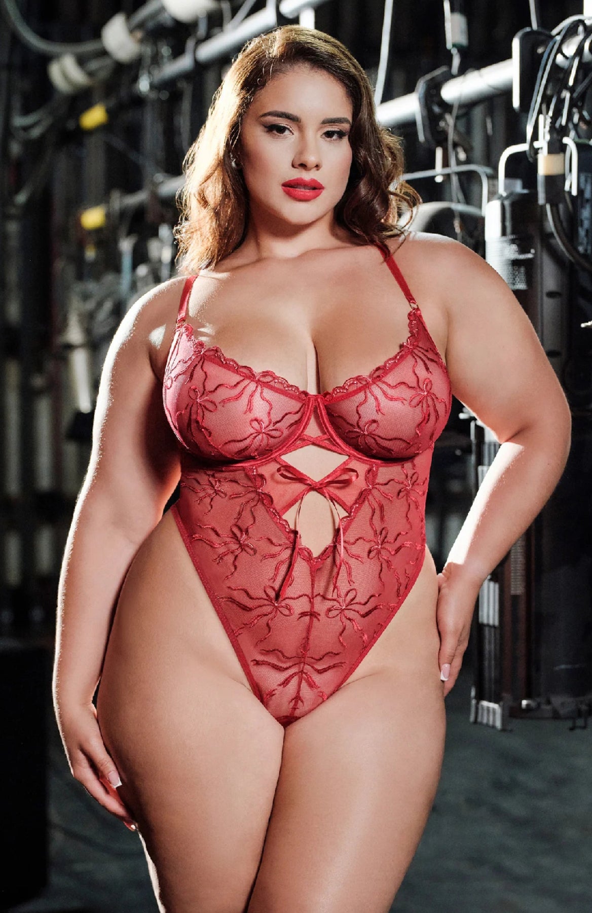 Soft, sheer, and undeniably flirty, this Sheer Embroidered Teddy captures romance with a playful edge. This unlined underwire teddy features delicate mesh embroidered with dainty bows and a charming front tie detail that draws the eye. The plunging neckline and G-string back create a silhouette that’s equal parts sweet and seductive, making this the perfect choice for a confident reveal.